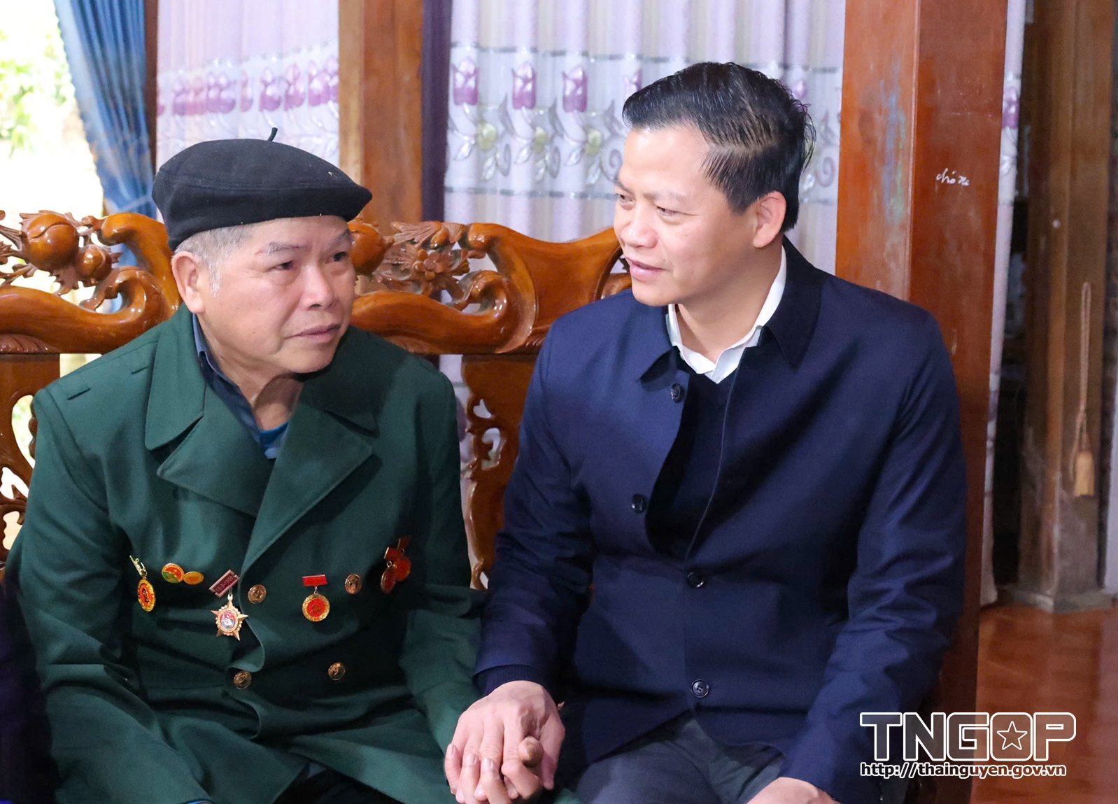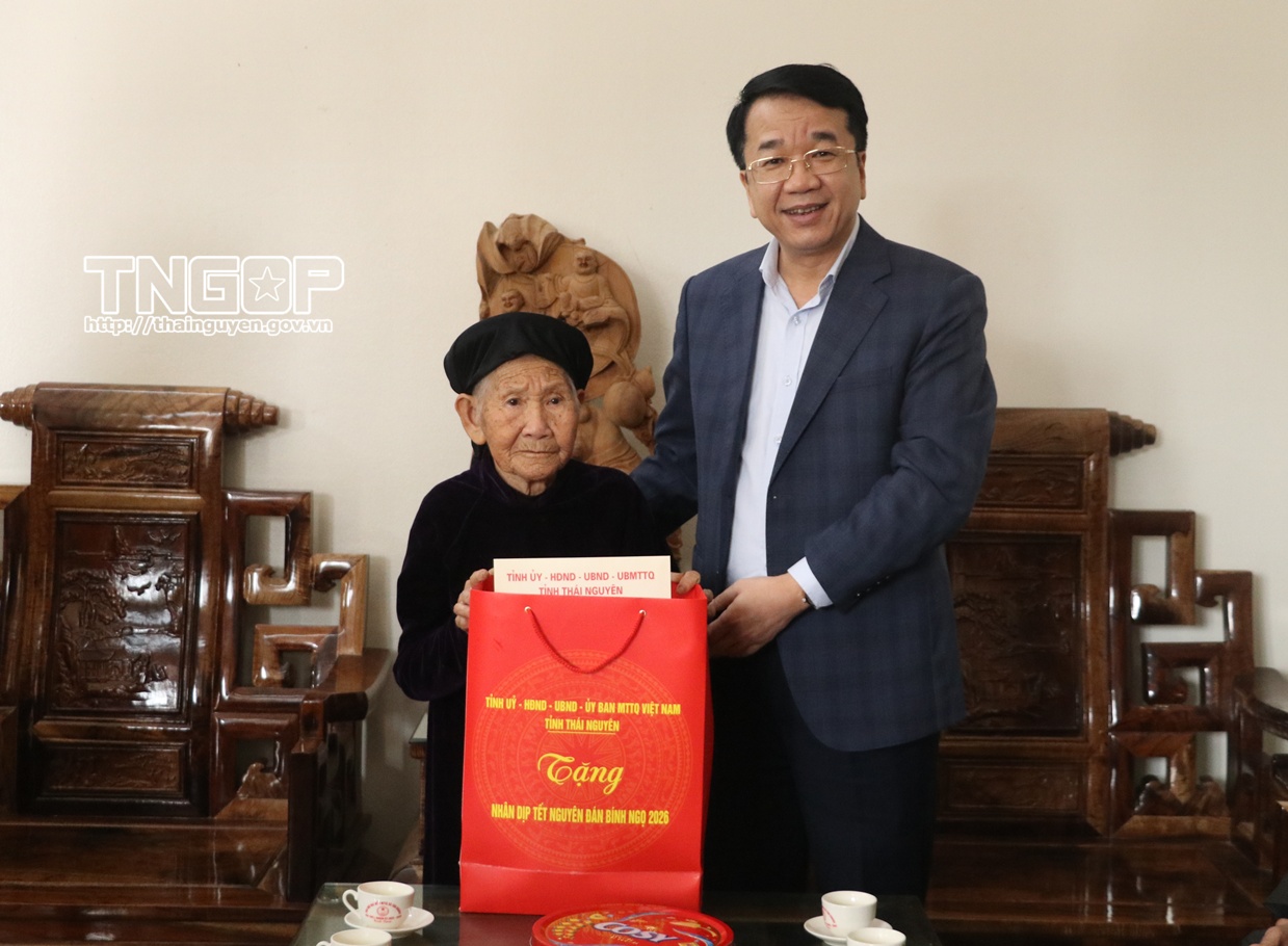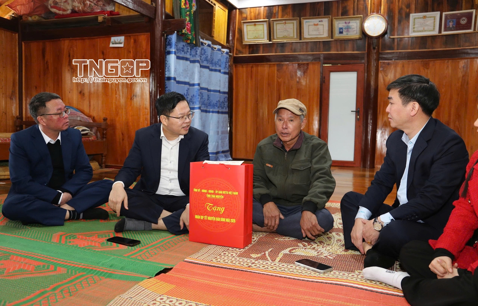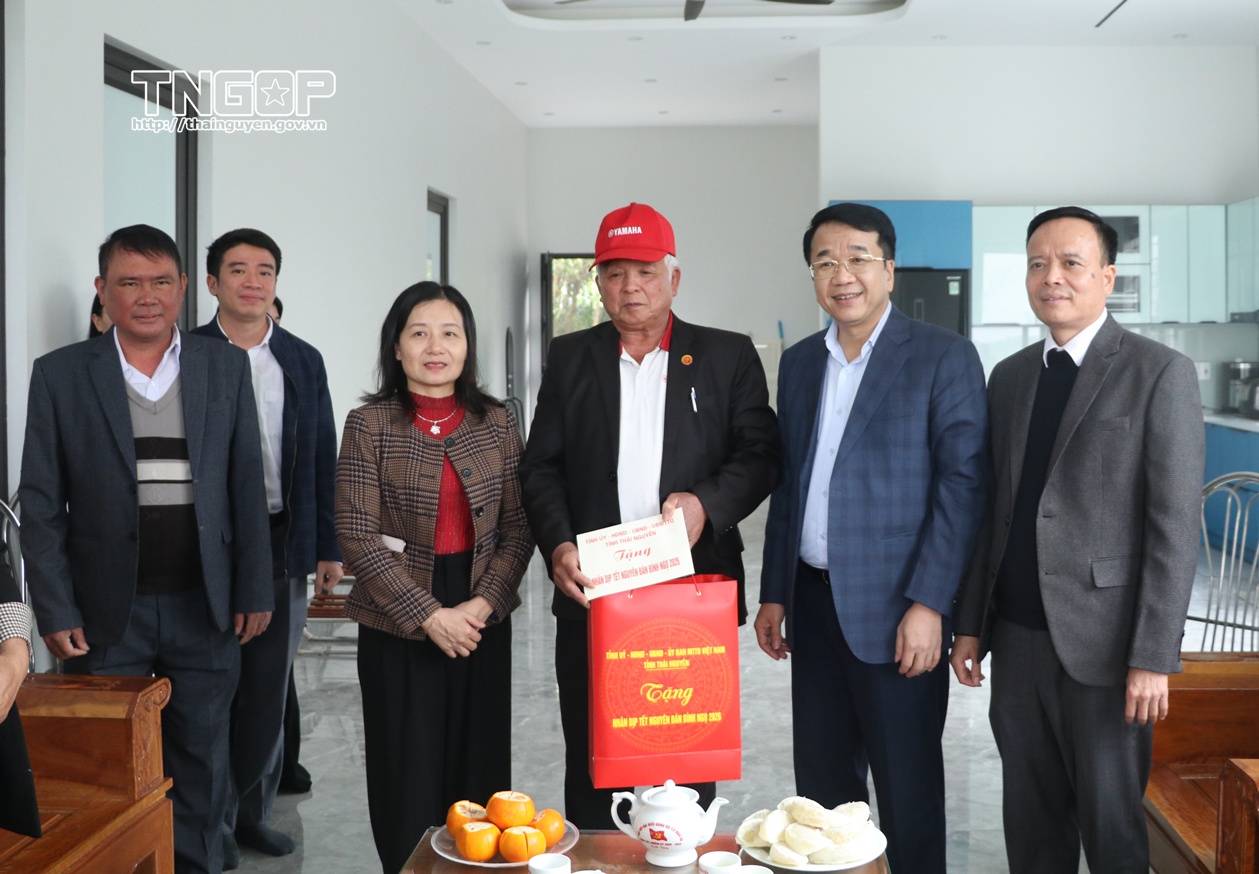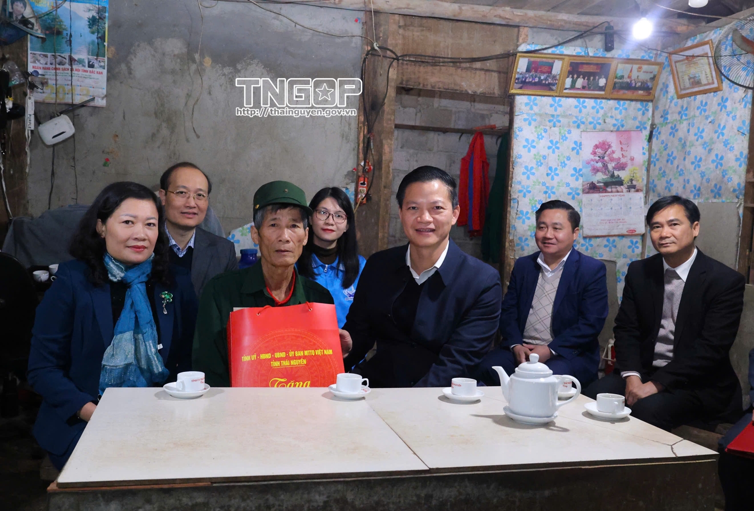 At the families visited, on behalf of the Working Delegation, the Chairman of the Provincial Fatherland Front Committee presented provincial gifts, inquired after their health and life and expressed happiness that families of people with meritorious services to the revolution and policy beneficiaries always receive attention and responsible care from local Party committees, authorities, unions and the protection of relatives and neighbors. He affirmed that in recent years, the Party, State and localities have always paid attention to directing the good implementation of “Gratitude and Remembrance Activities”, caring for policy families, meritorious people and the elderly. Specifically in Thai Nguyen province, every time Tet comes and Spring arrives, Party committees, authorities and the Fatherland Front organize peak periods with many practical activities, dedicating the best attention to care for and encourage policy families, meritorious people and poor households in the area. On the occasion of the new year, he wished families a traditional national Tet with much joy and happiness; continuing to promote revolutionary traditions, set bright examples and encourage children and grandchildren to actively work, study and serve, contributing to building an increasingly rich, beautiful and civilized homeland.