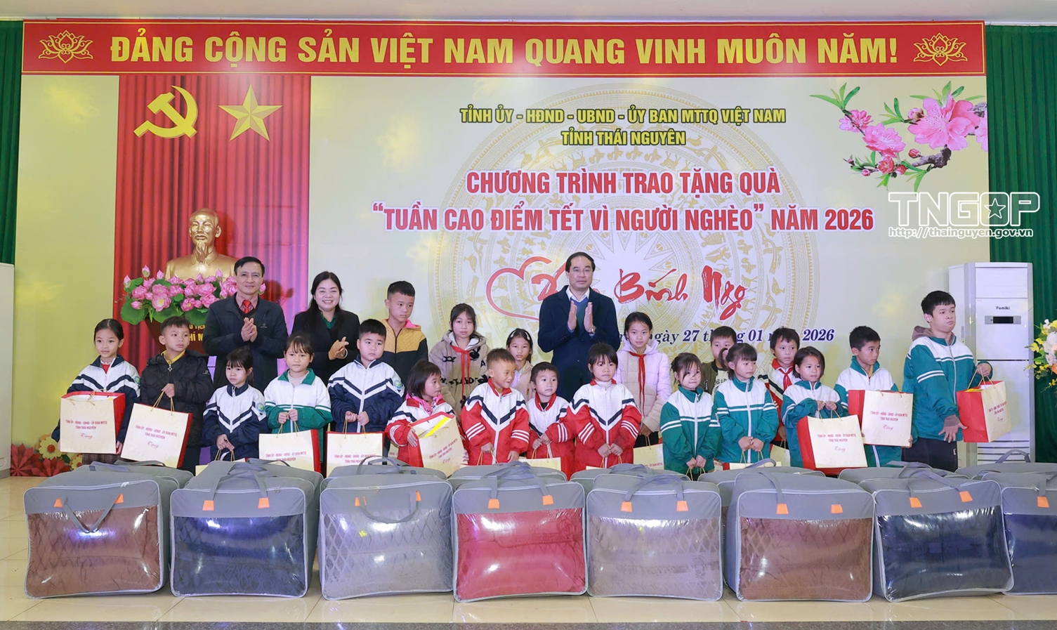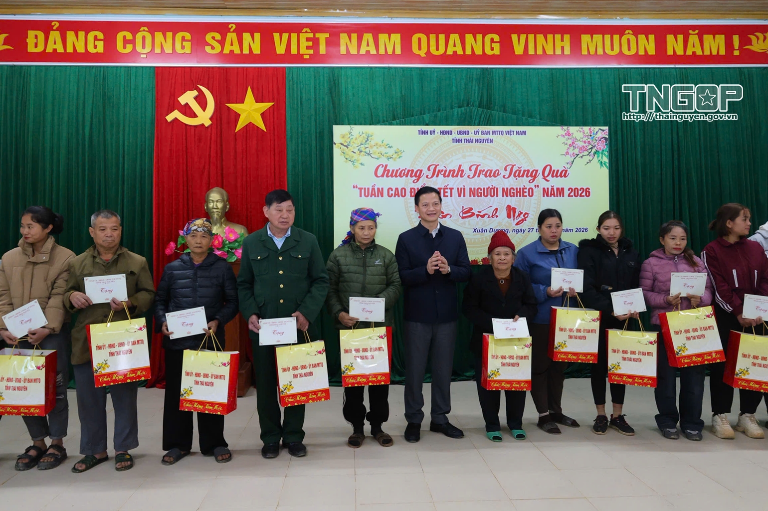 Speaking at the Program, Chairman of the Provincial People's Committee Vuong Quoc Tuan emphasized: Thai Nguyen province always determines that caring for the People's lives, especially the poor, vulnerable people, ethnic minority areas and difficult areas is both an important political task and a deep responsibility, affection and morality of the Party Committee, administration and the entire political system. Along with focusing on socio-economic development and ensuring national defense and security, the province always dedicates special attention to social security work and sustainable poverty reduction, with the spirit of “leaving no one behind”, especially every time Tet comes and Spring arrives. He sent greetings and hoped that the people of Xuan Duong Commune would always comply well with the Party's guidelines, the State's policies and laws, continue to strive to rise in life to escape poverty; and together with the local Party committee and authorities strive to build increasingly rich and beautiful villages and homeland.
