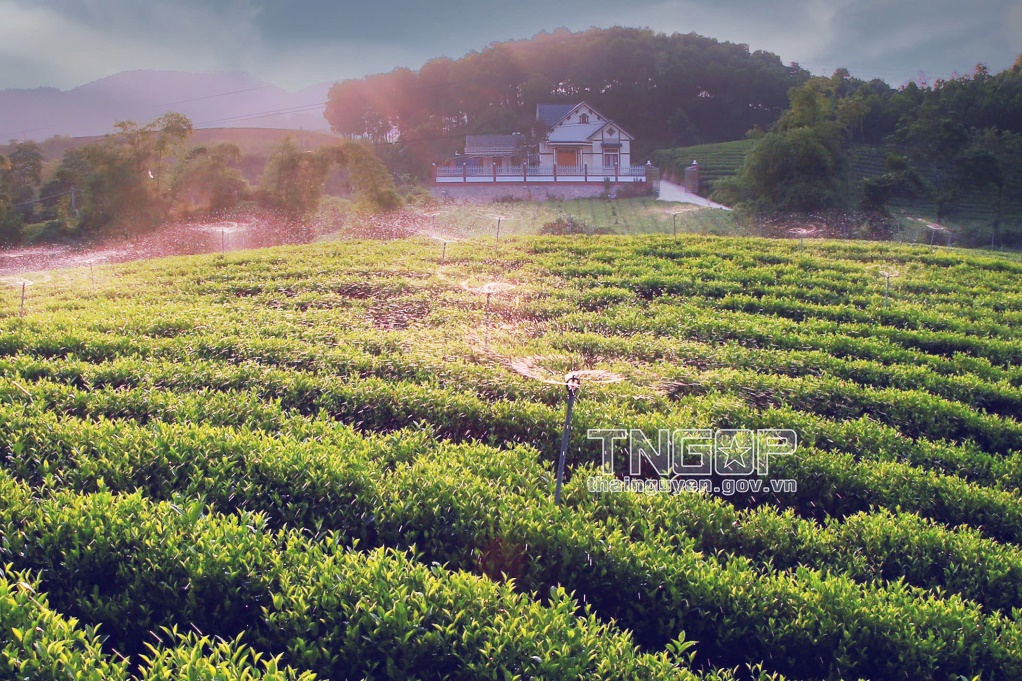 The tea irrigation system has been invested in to reduce farmers' labor while increasing productivity and quality. (Photo: Khac Thien)