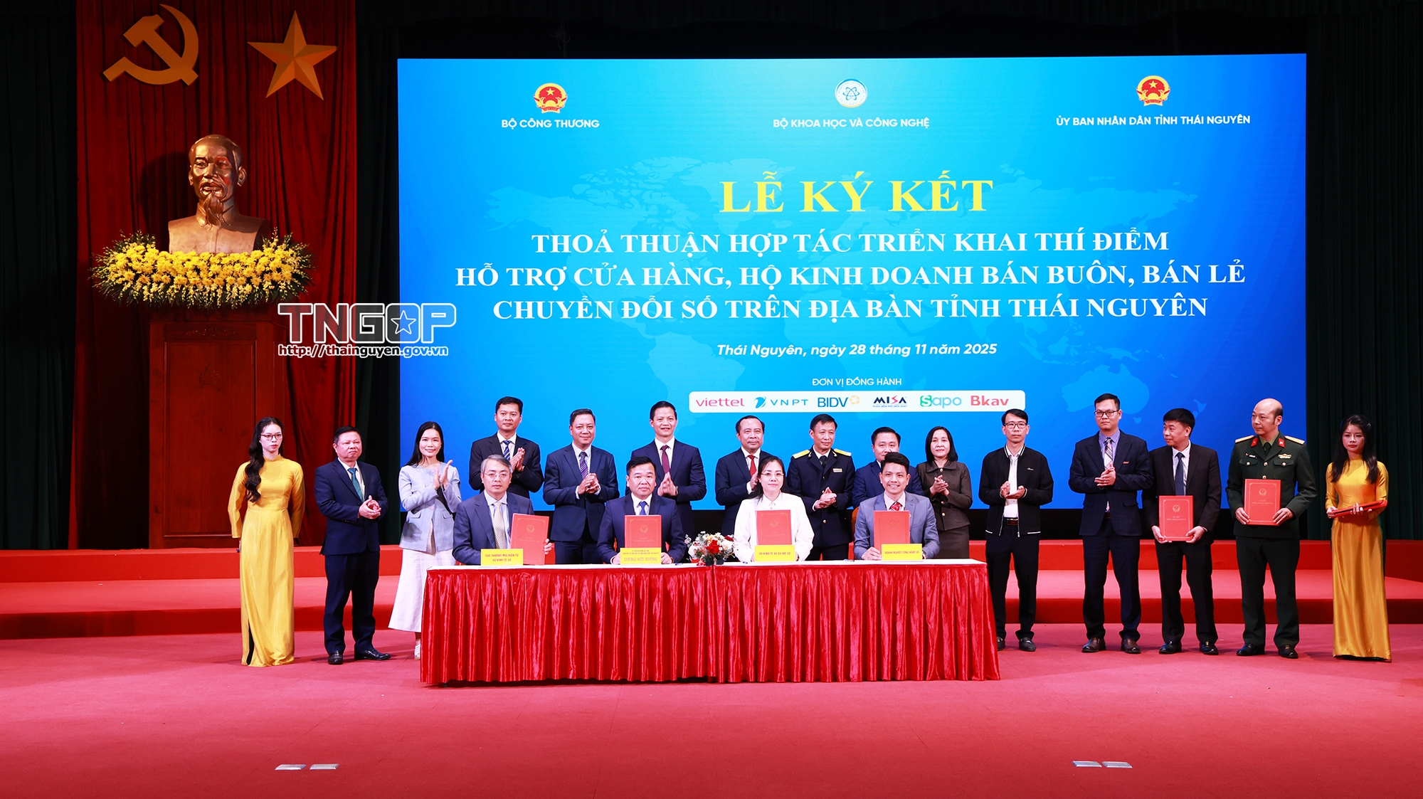 Signing ceremony of the four-party cooperation agreement between the Ministry of Science and Technology, Ministry of Industry and Trade, Thai Nguyen Province People's Committee and digital technology enterprises and banks on digital transformation
