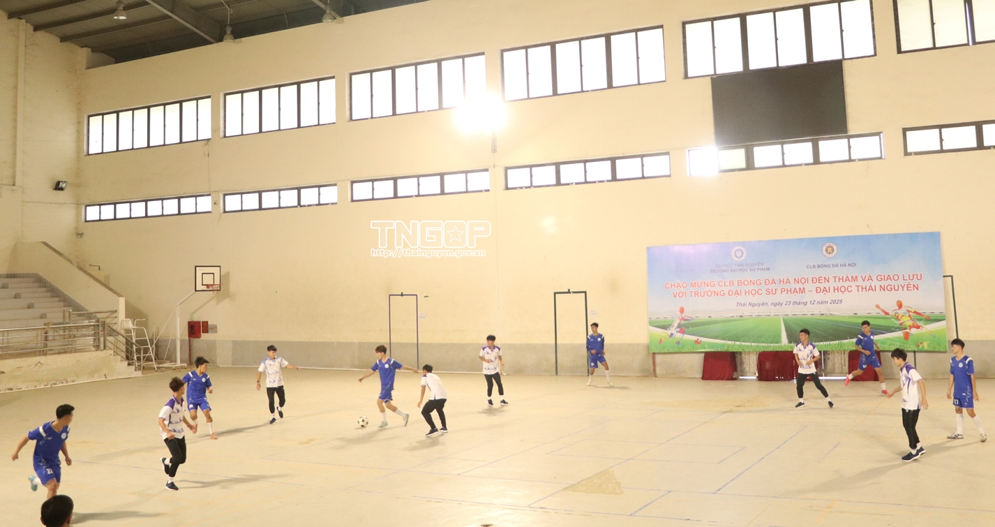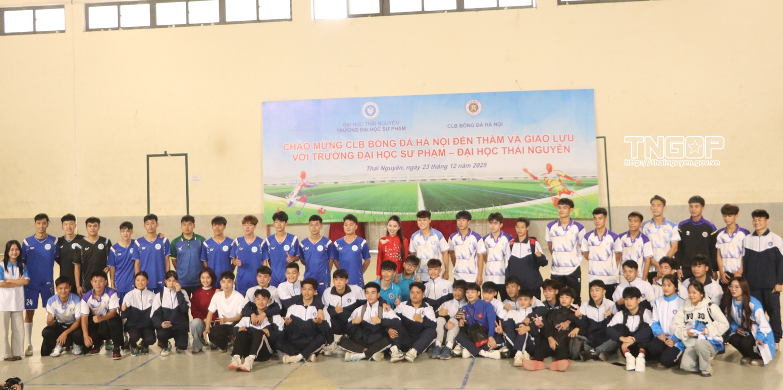 On the morning of December 23, despite rainy weather in Thai Nguyen, the atmosphere of interaction at several schools across the province between players from 4 football clubs - Hanoi FC, The Cong - Viettel FC, PVF People’s Public Security FC and Hoang Anh Gia Lai FC - and students remained lively and enthusiastic. Through open exchanges, the players shared stories about their training processes and journeys to pursue dreams and reach professional heights in their careers. Through exchange sessions, students learned about discipline in study and training, and the spirit of solidarity of Vietnam's leading football teams.